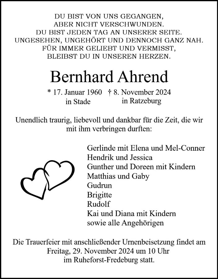 Bernhard Ahrendgestorben am 8. November 2024