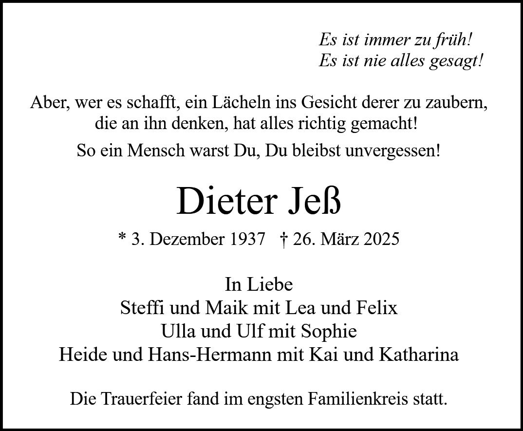 wir wünschen Ihnen von Herzen viel Kraft, dass Sie Menschen um sich haben, die Ihnen in dieser schweren Zeit beistehen und Halt geben. Zusätzlich können Sie auf dieser Gedenkseite Erinnerungen teilen und so das Andenken gemeinsam wachhalten.