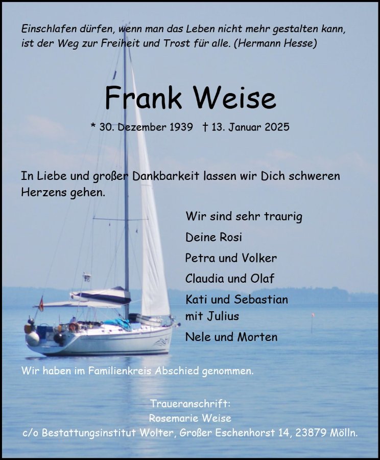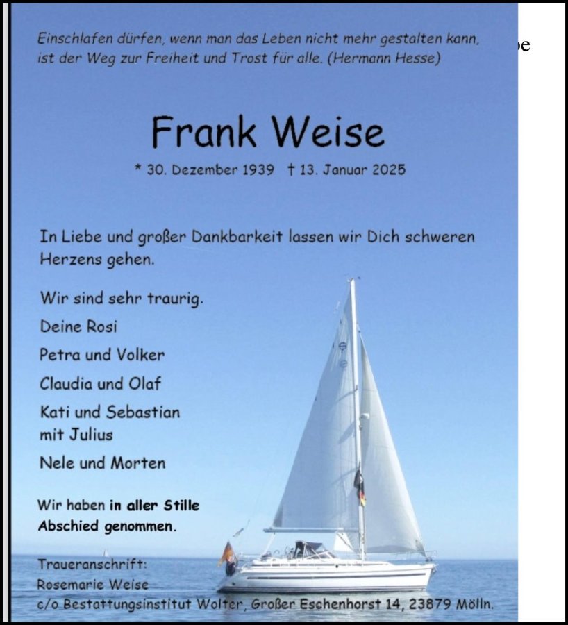 gestorben am 13. Januar 2025 in Ratzeburg