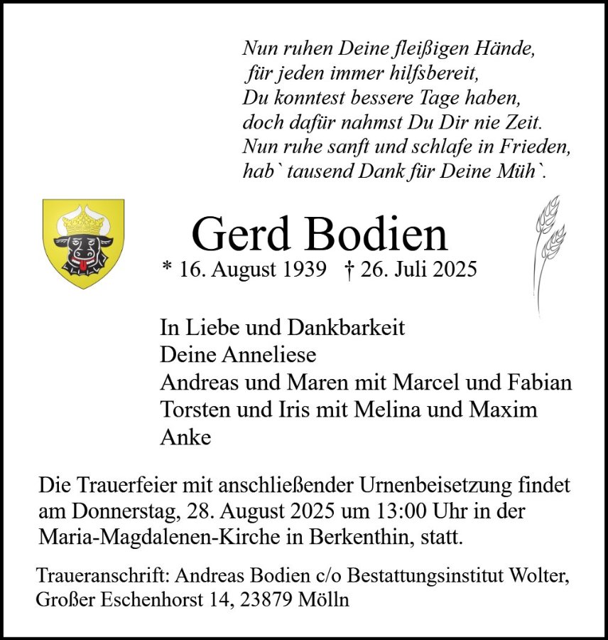 Gerd Bodiengestorben am 26. Juli 2025