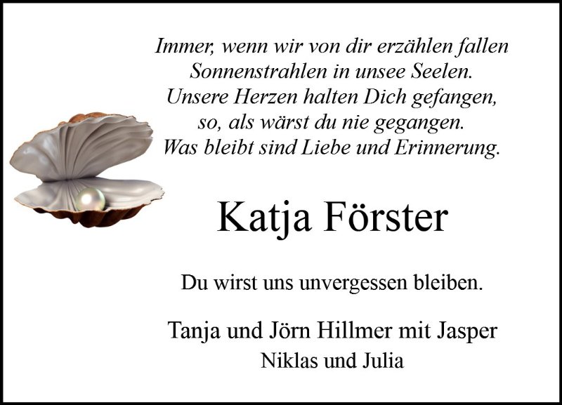Lieber Frank, es tut uns unendlich leid, dass Du Deine Katja so früh verloren hast.