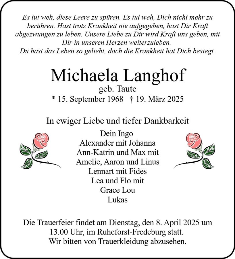 Michaela Langhofgestorben am 19. März 2025