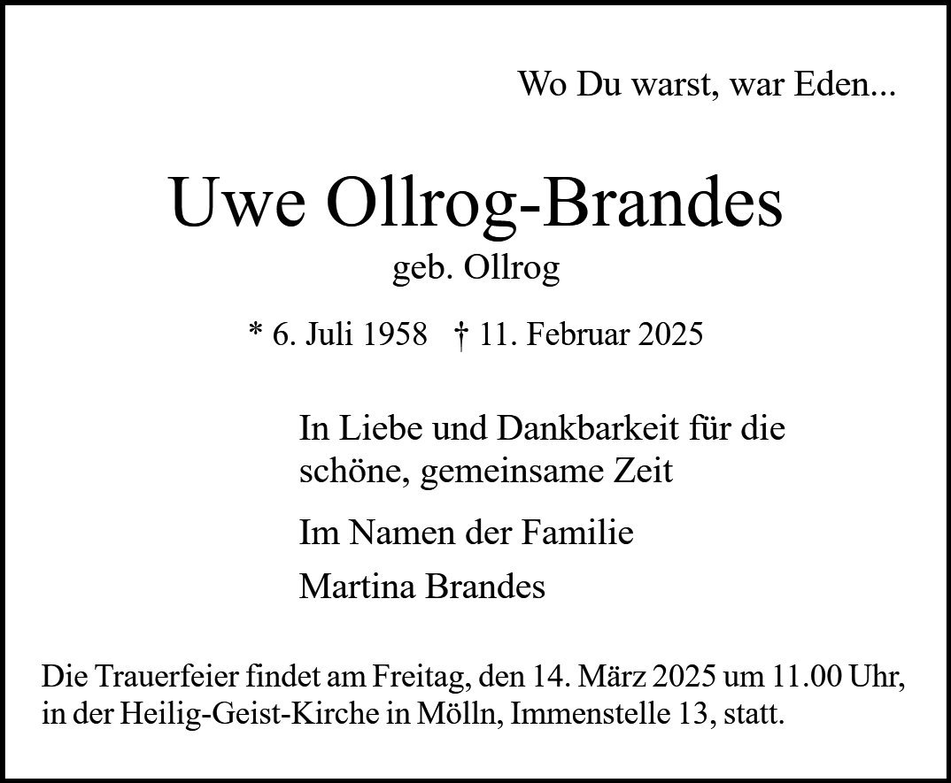 Uwe Ollrog-Brandesgestorben am 11. Februar 2025